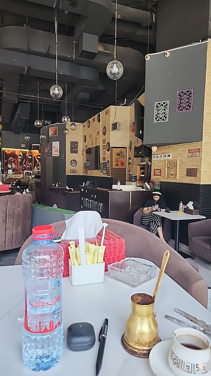 The cafe buzzes with a warm and welcoming atmosphere, where the enticing aroma of freshly brewed coffee mingles with the sweet scent of flavored shisha. Step inside, and you’ll find a cozy yet lively setting, perfect for gathering with friends or unwinding after a long day. The comfortable seating arrangements invite you to sit back and relax, making it an ideal spot to catch up, watch a match, or simply savor your favorite drink.